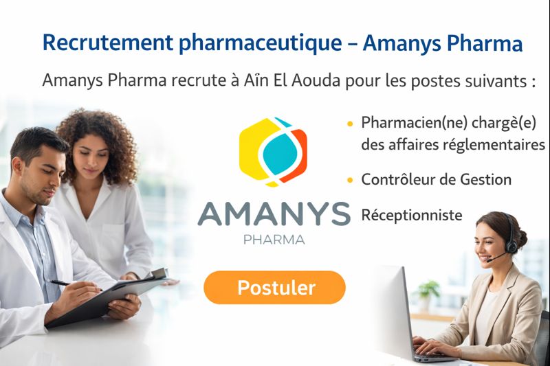 Amanys Pharma recrute 3 messages un Aïn El Aoudafr CDI et contrat ANAPECau sein de ces équipements réglementaires, financiers et administratifs.